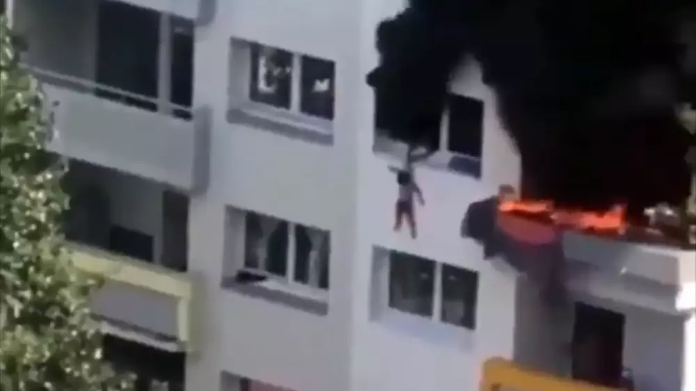 Инцидент произошел в городе Гренобль во вторник. Двое детей - 3 и 10 лет - оказались запертыми в горящей квартире, которая была полностью охвачена пожаром. На видео героического спасения видно, как ребенок постарше держит трехлетнего мальчика за футболку и отпускает в руки стоящих внизу соседей. Затем ребенок сам прыгает с третьего этажа и благополучно приземляется в руки неравнодушных жителей.