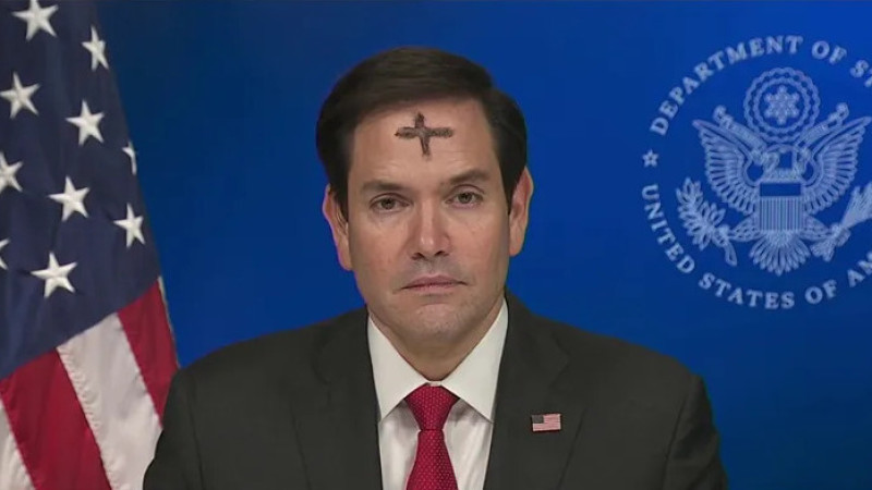 Рубио появился в эфире Fox News с пепельным крестом на лбу. Как оказалось, накануне в США прошла "Пепельная среда" - день начала Великого поста в католической, англиканской и некоторых лютеранских церквях. В этот день на католических мессах проводится специальный обряд посыпания голов верующих освященным пеплом, а иногда вместо этого пепел наносится на лоб знак креста.