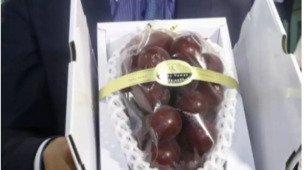 Управляющий высококлассной японской сетью супермаркетов Yumaowu на Тайване Се Мин-та купил виноград сорта "римский рубин" (Ruby Roman), который уже три года подряд на аукционе в Канадзаве бьет рекорд по стоимости грозди.