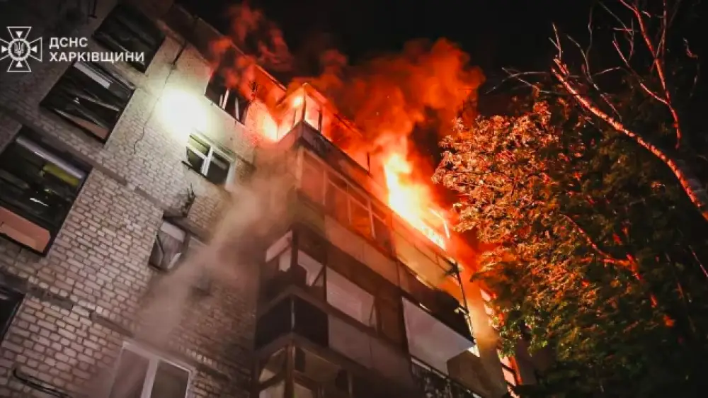 Харьков атаковали ударные дроны “Шахед“. Два человека погибли, 54 ранены Фото: ГСЧС Украины
