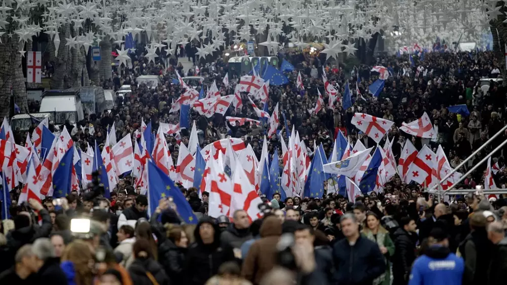 В Тбилиси десятки тысяч людей вышли на улицы, чтобы отпраздновать историческое решение ЕС - предоставить Грузии статус кандидата на вступление в Евросоюз, передает Tengrinews.kz со ссылкой на Euronews.