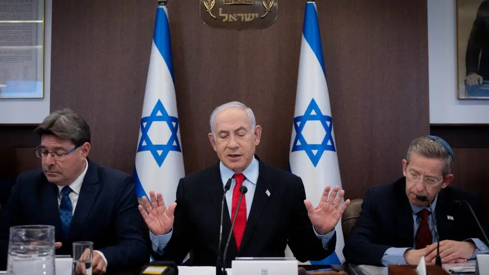 "Израиль категорически отвергает международный диктат в отношении постоянного соглашения с палестинцами. Такое соглашение будет достигнуто только путем прямых переговоров между сторонами, без предварительных условий, — говорится в заявлении, одобренном кабинетом. — Израиль будет и впредь выступать против одностороннего признания палестинского государства. Такое признание после резни 7 октября станет огромной, беспрецедентной наградой терроризму и помешает любому будущему мирному соглашению", - заявил Нетаньяху.