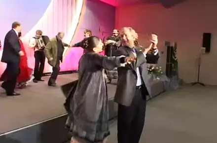 На видео Путин водит хороводы на сцене, а Буш-младший танцует перед сценой с одной из участниц танцевального коллектива. После танцев лидеры двух стран поклонились и вернулись веселыми за стол. Там Буша-младшего ожидала его супруга Лора.