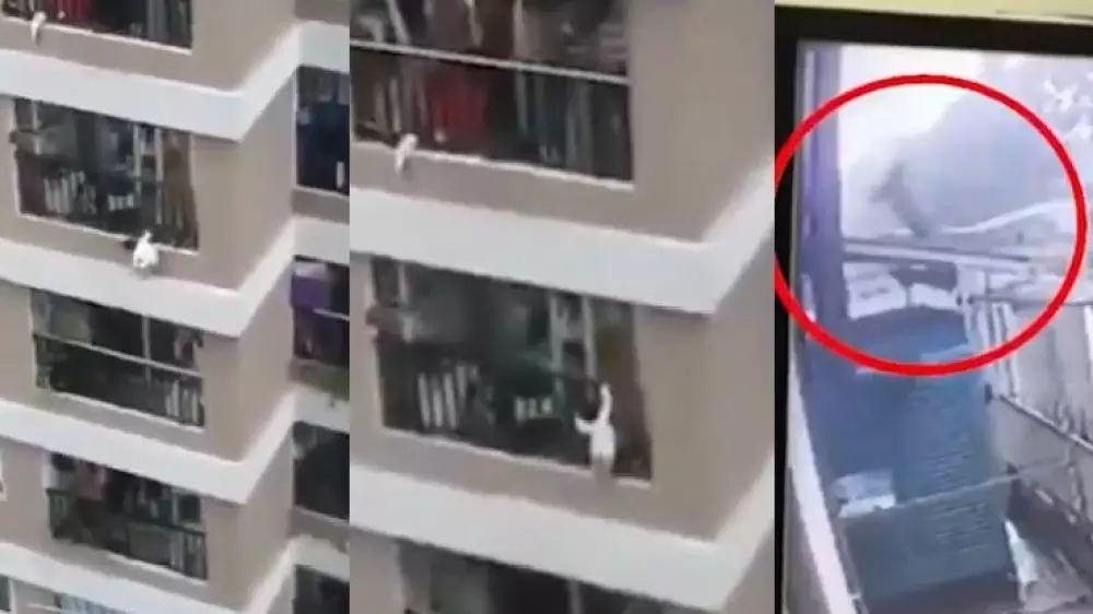 Жители соседнего дома сняли на видео 2-летнюю девочку, которая бесстрашно перелезла через перила балкона и повисла на огромной высоте. Люди кричали и звали на помощь, но ребенок сорвался.