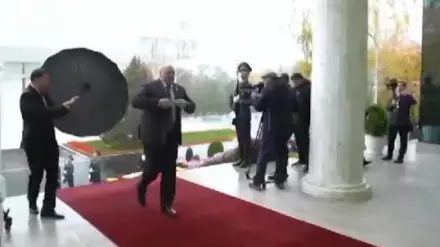 Поднимаясь по ступенькам в зал заседаний, белорусский лидер на секунду потерял равновесие по непонятной причине, однако не упал. Кадры случившегося разошлись в сети.