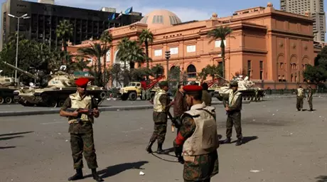 В Каире в результате массовых беспорядков повреждены музейные экспонаты, а главная достопримечательность страны - египетские пирамиды - впервые за много лет закрыта для посещения, сообщает "Вести". Коллекция Каирского музея насчитывает более 120 тысяч экспонатов. "Разбиты витрины, статуи. Видимо, грабители пытались урвать как можно больше. Они через крышу залезли в основное здание музея и там попытались украсть всё, что только можно", - сообщает агентство. Всего пострадали 70 экспонатов. Многие из них разбиты на десятки частей.
