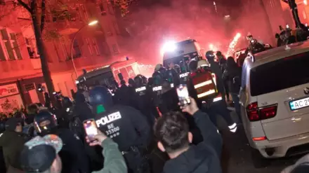 Митинг начался накануне вечером в рабочем районе Нойкёльн, где проживает большое количество выходцев из арабских стран. После того как полиция попросила собравшихся разойтись, в стражей порядка полетели камни и фейерверки, в ответ были применены водометы.