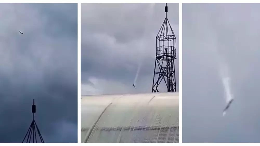 На записи видно, как дымящееся воздушное судно стремительно теряет высоту. Предварительно, крушение произошло под поселком Куженкино в Тверской области, обломки упали рядом с фермой.