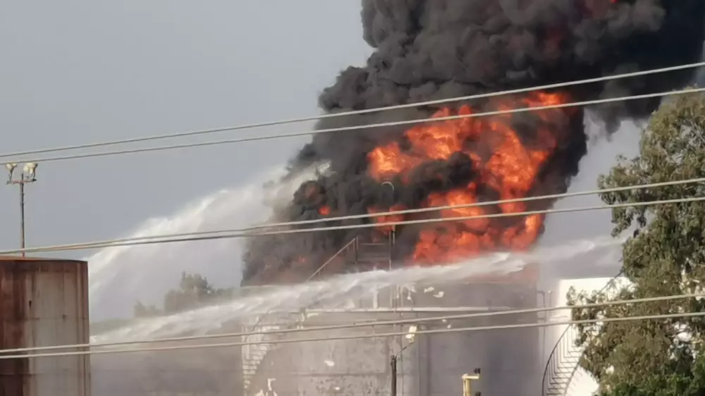 Massive fire in Al-Zahrani oil installation in #Lebanon after large sound is heard, local channel aljadeed reporting. Army is on scene and area is being evacuatedpic.twitter.com/yOzWCyJYQ2