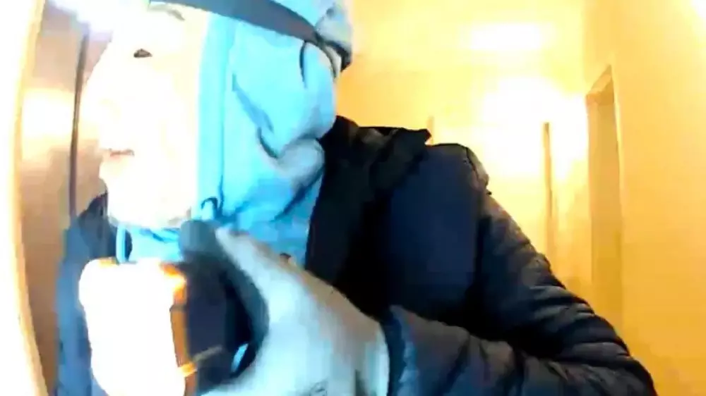 На опубликованной в статье фотографии с камеры наблюдения заметно, что неизвестный был в "хэллоуинской" маске, перчатках, толстовке с капюшоном и с налобным фонарем. Он попытался проникнуть в квартиру политика, но был замечен и скрылся.