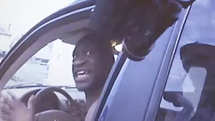 На кадрах видно, как Лейн стучит в окно автомобиля фонариком, но Флойд не сразу открывает дверь. Как только дверь открывается, Лейн достает пистолет и направляет его прямо в голову Флойда. После просьб не стрелять и требований полицейского выйти из машины на Флойда надевают наручники и пытаются посадить его в полицейский автомобиль.