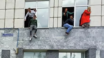 Первыми в соцсетях появились кадры, на которых видно, как злоумышленник ведет беспорядочную стрельбу по людям и окнам вуза. Студентам ради спасения приходилось выпрыгивать из окон здания.