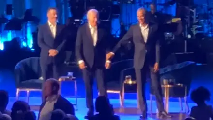 Экс-президенту США Бараку Обаме пришлось за руку уводить нынешнего американского лидера Джо Байдена, застывшего на месте сразу после встречи со сторонниками в Лос-Анджелесе, передает Tengrinews.kz со ссылкой на New York Post.