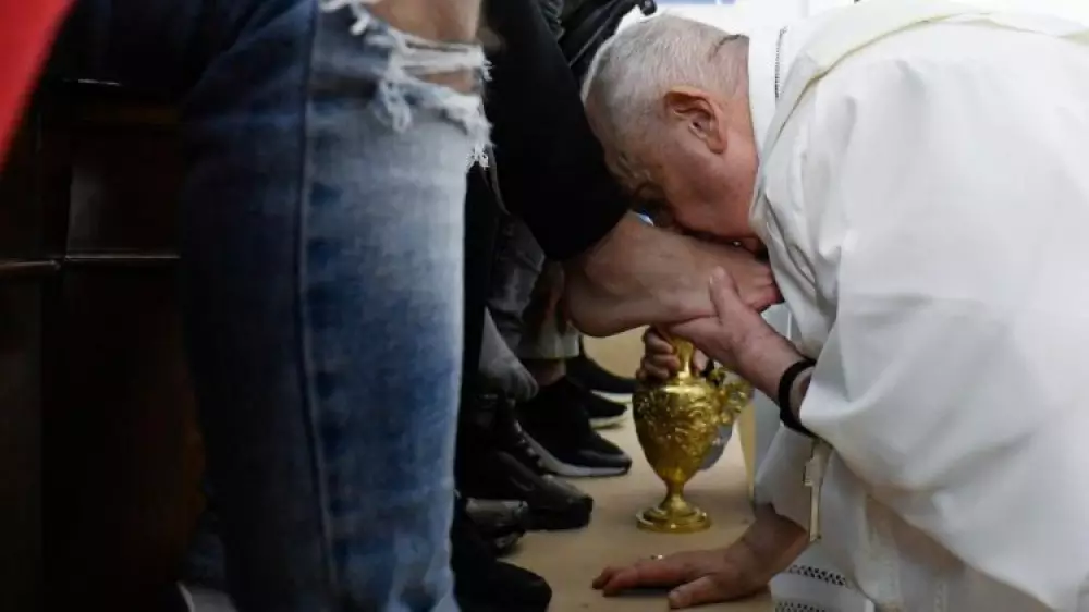 Папа Римский Франциск вымыл ноги заключенным в тюрьме для несовершеннолетних на окраине итальянской столицы, передает Tengrinews.kz со ссылкой на Euronews.