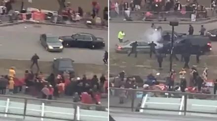 Инцидент произошел в Канзас-Сити (штат Миссури, США) в среду и начался в 8:12 по местному времени, когда машина пробила заграждения парада. Полиция установила устройства с шипами для прокалывания шин, но автомобиль преодолел препятствия и продолжил движение по пути маршрута чемпионского парада, где находились тысячи человек. Затем одна из машин органов правопорядка догнала автомобиль злоумышленников и столкнула его с дороги, после чего он немедленно был окружен полицией.