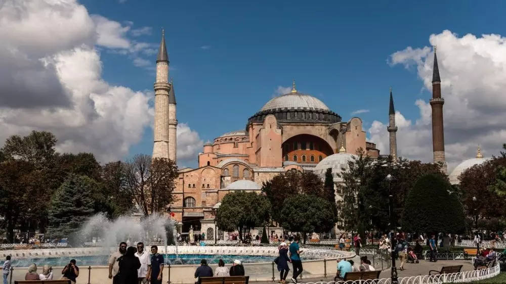 Превратить собор Святой Софии в мечеть два года назад распорядился президент Турции Реджеп Тайип Эрдоган. После этого часть византийской мозаики христианского периода была завуалирована. Как отмечает телеканал, решение турецкого руководства вызвало бурю негодования, особенно - за пределами Турции.