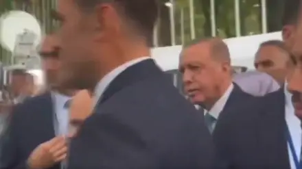 Судя по выражению лица, турецкий лидер был весьма недоволен сложившейся обстановкой.