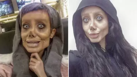 Сахар Табар прославилась после публикации в Instagram (сейчас ее страница удалена. - Прим.) фотографий, на которых она напоминала одновременно Анджелину Джоли и зомби. Позднее девушка призналась, что создала этот образ при помощи макияжа и фотошопа.