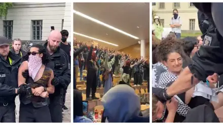 3 мая на пропалестинской акции перед зданием университета имени Гумбольдта в Берлине вызвали полицию в связи с "разжиганием ненависти". Около 30 участников так называемого "Суда чести" заблокировали доступ к главному зданию вуза.