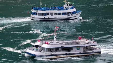 На знаменитых водопадах на границе двух стран канадские пароходы могут принять на борт только шесть пассажиров из 700 возможных. Как ясно из фотографий, в США эта цифра гораздо выше. Согласно данным туроператоров, на американской стороне пароходы загружены на 50 процентов.