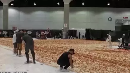 Самую большую в мире пиццу  приготовили в Калифорнии кадр видео