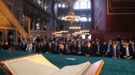 Утром 24 июля в Стамбуле состоялся первый за 86 лет пятничный намаз под сводами собора Святой Софии, которому недавно вернули статус мечети, сообщает Tengrinews.kz со ссылкой на Euronews.
