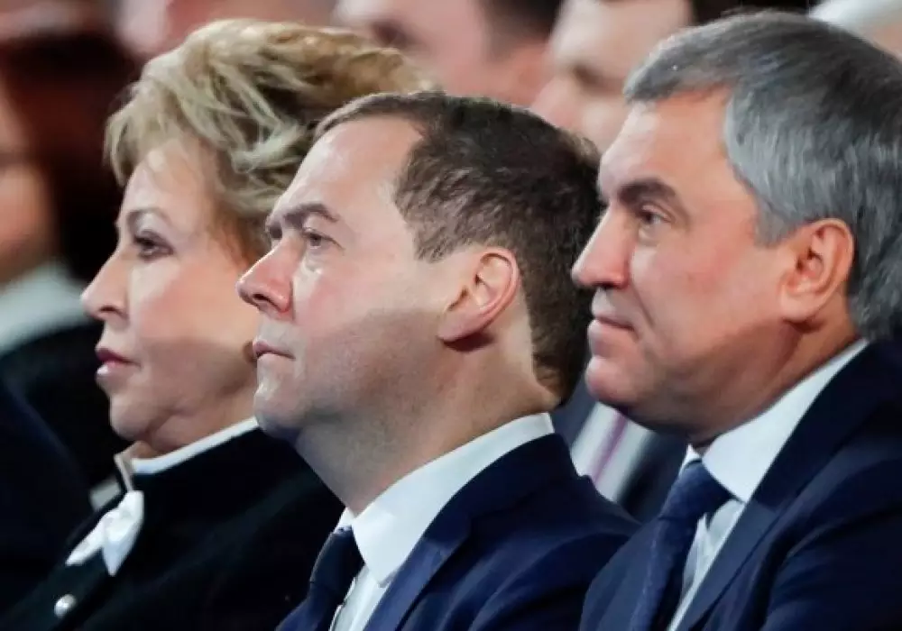"На этих словах президента камера поймала Дмитрия Анатольевича, - говорит Анищенко. - Мы видим, как у него потрясывается нижняя губа, брови сильно сдвинуты, что говорит о сосредоточении или гневе. Медведев напряжен, не меняет позу, он пытается контролировать эмоции. В этот момент камера наезжает на главу Госдумы Вячеслава Володина, который кивает головой, улыбается. Когда Путин говорит о том, что должность премьера будет утверждать Госдума, Володин не скрывает удовлетворения - его поза расслабленная, он доволен, в отличие от Медведева, которому все это неприятно".
