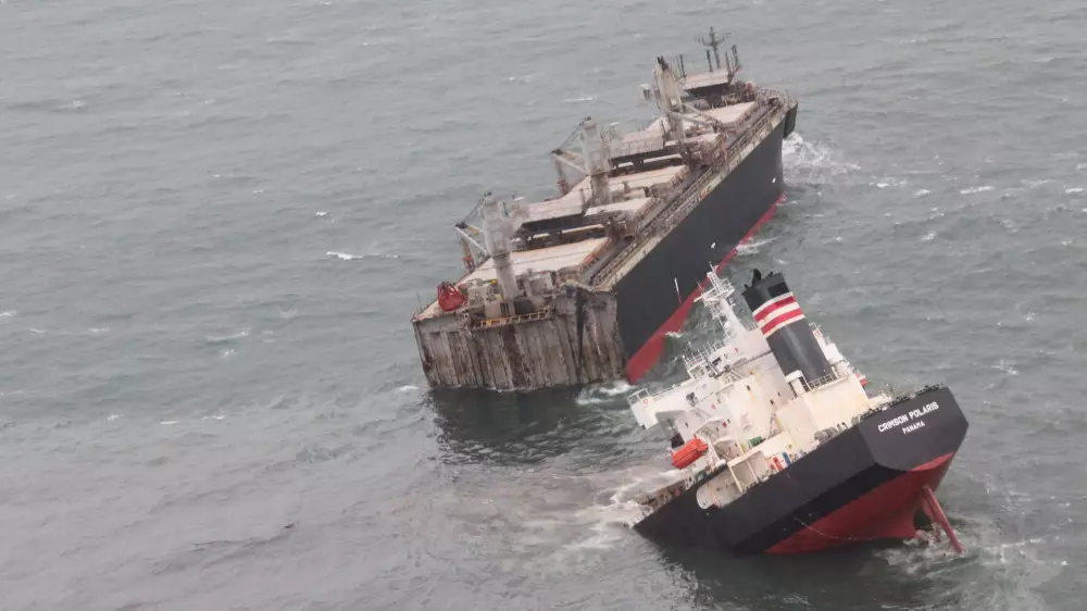 По словам представителя береговой охраны, две части судна не сдвинулись с места и находятся под пристальным наблюдением патрульных катеров. Также обнаружена утечка топлива в море, о масштабе которой пока не сообщается.