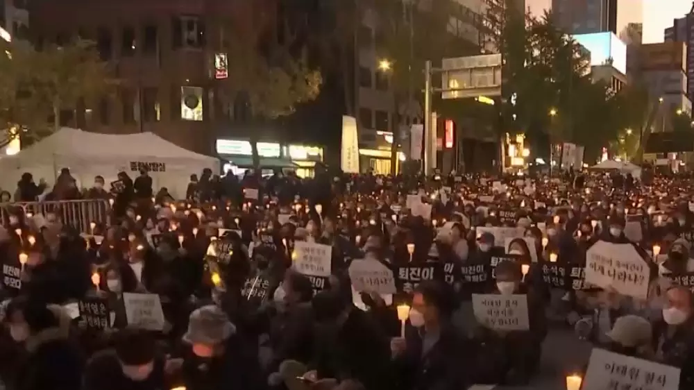 Тысячи людей зажгли свечи в центре Сеула Кадр видео.