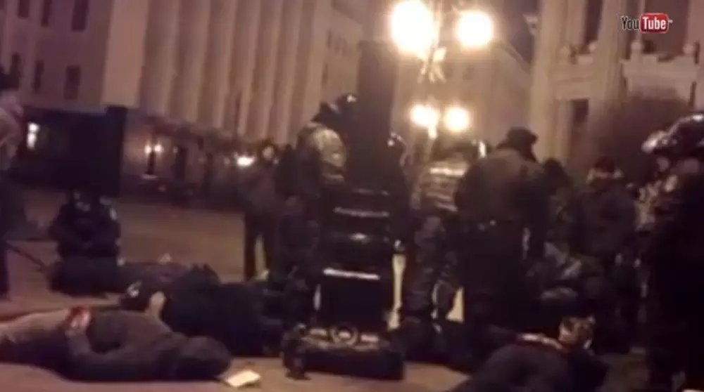 Видео избиения митингующих силовиками Украины выложили в Сеть, сообщает Life News. На кадрах видеозаписи опубликованной в Сети видно, как сотрудники спецподразделения избивают задержанных во время столкновений у здания Администрации президента. Как сообщают украинские СМИ, со стороны митингующих пострадало более сотни человек, 42 из них госпитализированы. Около сотни милиционеров и более 10 военных получили травмы, многие также госпитализированы. Видео можно посмотреть здесь. По последним данным агентства РИА Новости, участники акции протеста против политики властей Украины блокируют подъезды и входы в здание кабинета министров страны в Киеве. Протестующие становятся по несколько десятков человек у ворот, через которые заезжают во двор здания правительства министры и сотрудники ведомства. В частности, возле ворот, через которые, по утверждению одного из оппозиционеров, экс-министра внутренних дел Юрия Луценко, на работу заезжает премьер Николай Азаров, вход заблокирован несколькими десятками людей и спортивным автомобилем яркой раскраски. Сотрудники милиции не препятствуют демонстрантам. Напомним, в ночь на 30 ноября спецназ разогнал сторонников украинской евроинтеграции в центре Киева. Во время разгона были задержаны более 30 человек, сейчас все они отпущены. 1 декабря массовые демонстрации были продолжены. У здания Администрации Президента Украины собралась огромная толпа митингующих. Массовые акции сторонников евроинтеграции в Киеве и других регионах Украины начались 21 ноября после объявления правительством о приостановке подготовки соглашения об ассоциации с ЕС, которое планировалось оформить на саммите "Восточного партнерства" в Вильнюсе.