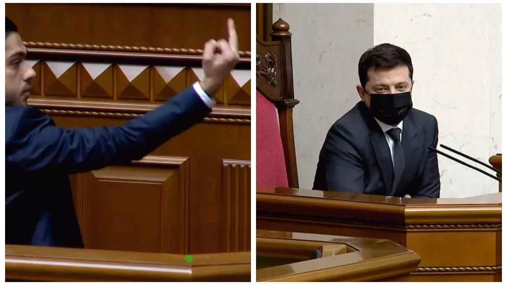 Народный депутат Гео Лерос показал непристойный жест президенту Украины Владимиру Зеленскому во время выступления в Верховной Раде, сообщает Tengrinews.kz со ссылкой на "Украинскую правду".