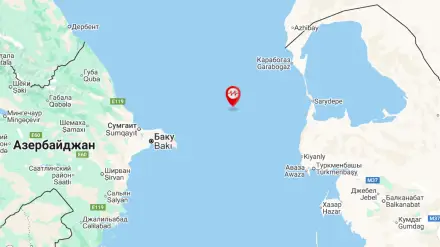 Землетрясение зафиксировали в Каспийском море Скриншот Google карты