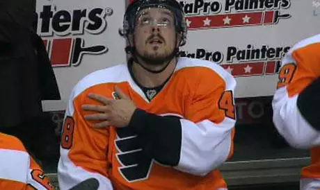 Нападающий "Флайерс" Дэнни Бриер забросил шайбу на последней секунде овертайма при счете 4:4. Однако видеоповтор показал, что шайба попала в ворота "Шаркс" через одну десятую секунды после окончания дополнительного времени.