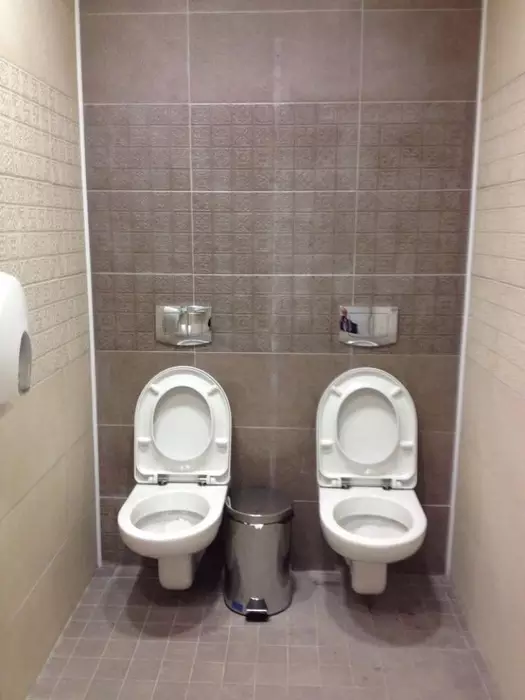 Гринберг сопроводила свой пост двумя фотографиями. На одной из них показано, как выглядит "знаменитая кабинка" сейчас (унитазов там уже нет, на их место поставили три тумбочки). На другом - аналогичная уборная в том же биатлонном центре, но расположенная этажом выше. "Как видите, перегородки на месте, условия для уединения есть", - отметила сотрудница компании.
