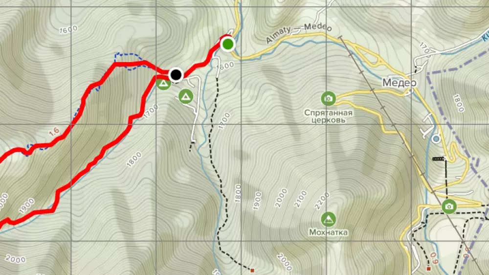 Тропа все время идет вдоль русла. Часа через 1,5-2, не доходя до поворота ущелья на юг, ответвляется хорошо видимая тропа, взбирающаяся на относительно пологий в этом месте северный склон ущелья. Эта тропа, если пожелаете, выведет вас на верхнюю, магистральную тропу, ведущую на Кок-Жайляу, перед последним, четвертым подъемом. Это наиболее легкий путь по этому маршруту.
