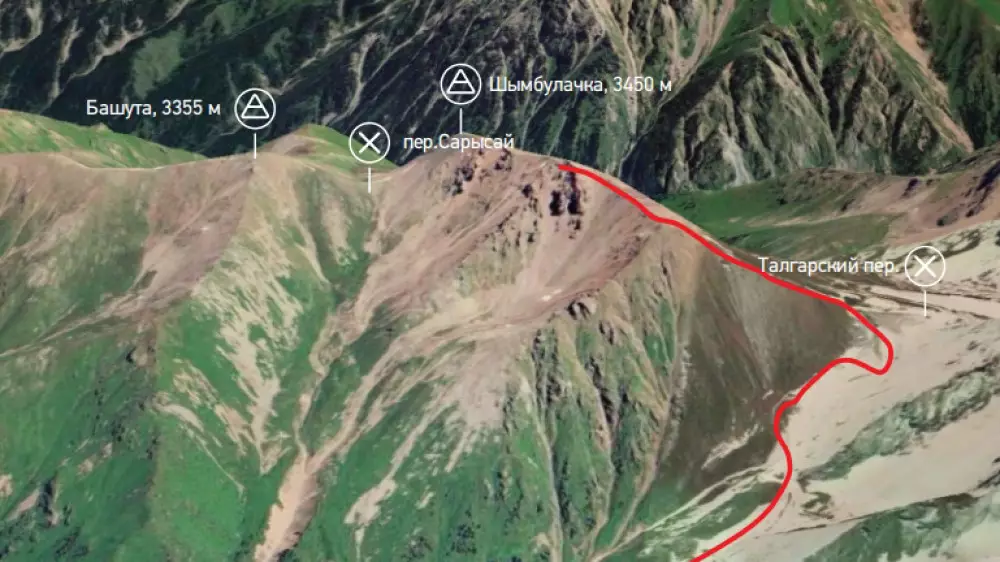 Описание: Горнолыжный комплекс (ГЛК) "Шымбулак" - перевал Талгарский - вершина Чимбулачка