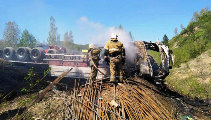 Сегодня на 25-м километре трассы Усть-Каменогорск - Алтай в результате опрокидывания автомобиля марки Volvo произошло загорание кузова транспортного средства.