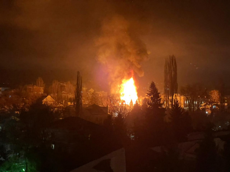 По информации ДЧС Алматы, пожар произошел по адресу: улица Таттимбета, дом 88 В. "Силы и средства ДЧС выехали по повышенному рангу. По прибытии открытым пламенем горели мансарда и кровля двухэтажного здания, создалась угроза перехода огня на расположенный рядом эркер.