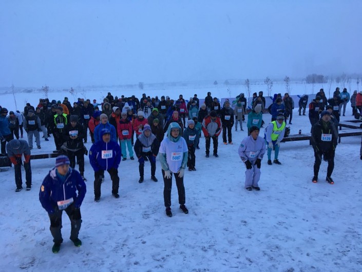 С самого утра в Астане установилась теплая и очень снежная погода, а в триатлон-парке первые спортсмены начали разминку еще затемно. В соревнованиях на три дистанции приняли участие около 400 человек. Чуть больше 20 из них сумели преодолеть дистанцию в 42,2 километра под непрекращающимся снегопадом.