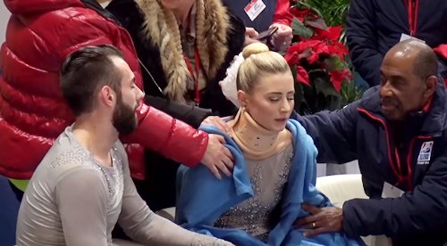 После проката Эшли пришлось обратиться за медицинской помощью. На шею ей надели фиксатор, а во время оглашения оценок американка сидела с приложенным к голове пакетом льда.