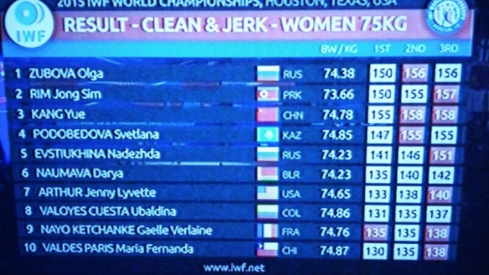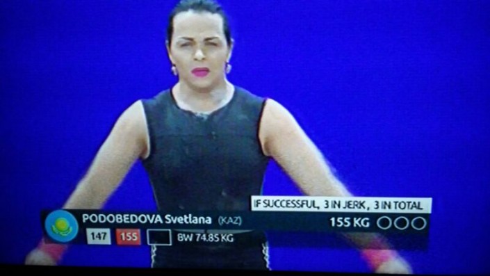 В сумме двух упражнений (рывок и толчок) 29-летняя Подобедова набрала 276 килограммов. Столько же в сумме подняла и 21-летняя россиянка Ольга Зубова, которая в итоге завоевала "бронзу", обойдя Подобедову по собственному весу - 74,38 против 74,85.