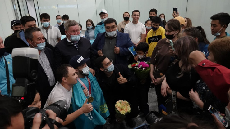 В терминале аэропорта чемпиона встретила министр культуры и спорта Актоты Раимкулова.