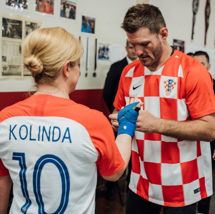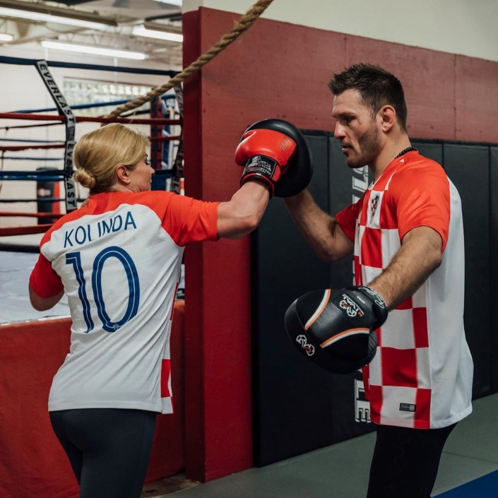 Президент Хорватии Колинда Грабар-Китарович во время дипломатического визита в США приехала в зал к чемпиону UFC в тяжелом весе Стипе Миочичу - американскому бойцу хорватского происхождения. Об этом сообщает FightTime.