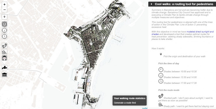 Агентство городского планирования Barcelona Regional выпустило приложение Cool Walks, которое направляет пешеходов по самому тенистому маршруту. Также можно использовать приложение, чтобы найти фонтанчик для питья или укрытие от солнца. В приложении пока отображается только один район Барселоны.
