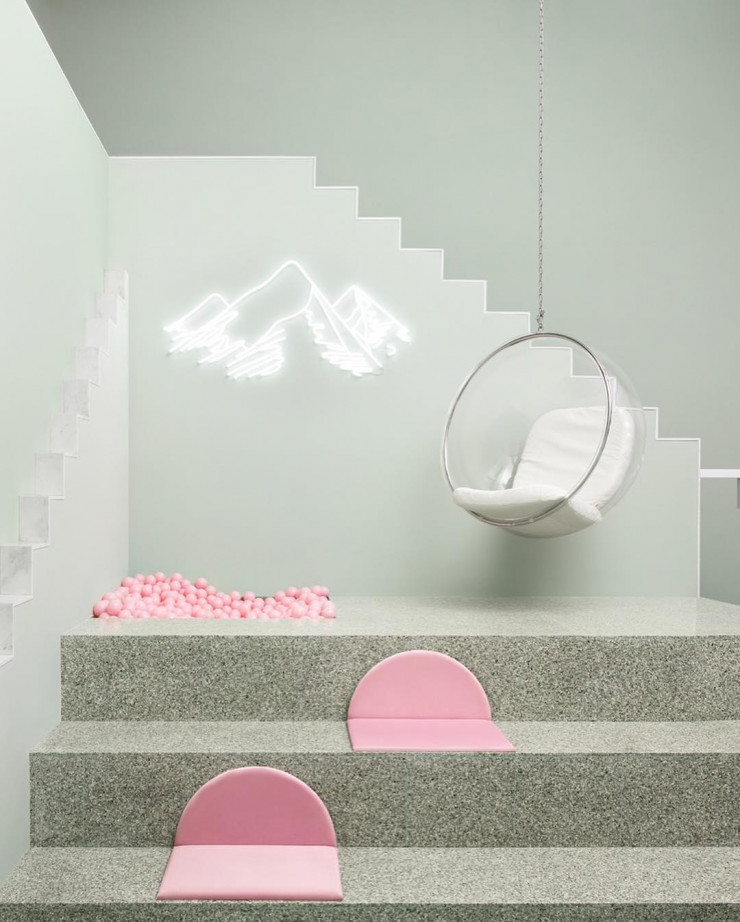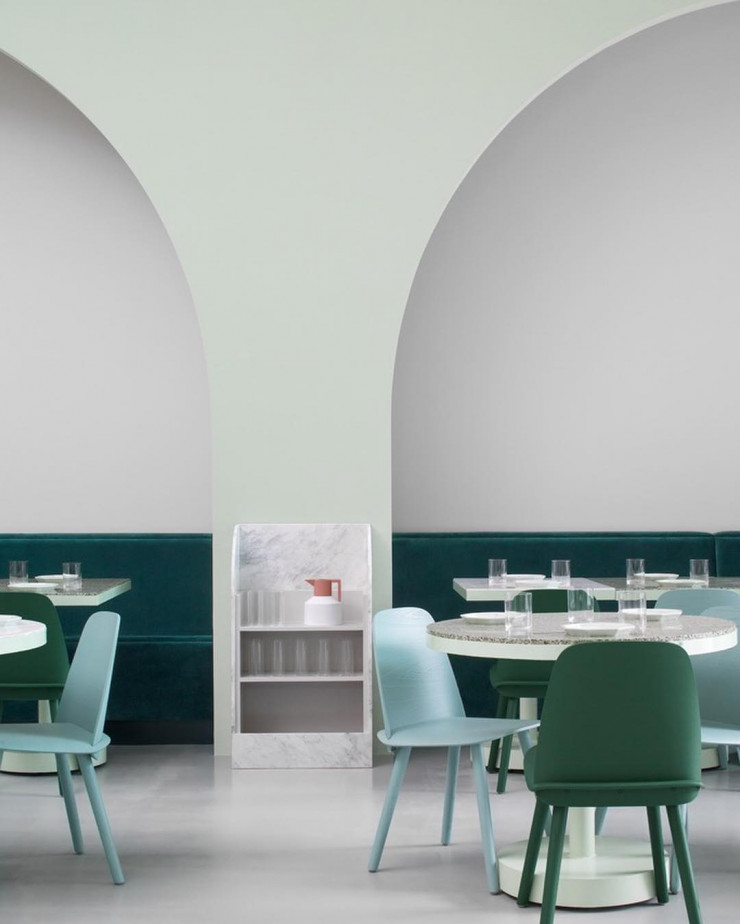 Кафе в столице провинции Сычуань, которое находится внутри отеля Budapest, имеет минималистский дизайн с оттенками розового и серого. Декор вдохновлен фильмом Grand Budapest Hotel, снятым Уэсом Андерсоном. Мраморные поверхности с геометрическими фасадами создают непринужденную, спокойную атмосферу. Владельцы кафе выбрали австралийскую студию дизайна, чтобы создать обстановку, которая бы понравилась международной аудитории.