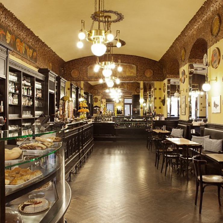 Это заведение 1921 года привлекает внимание издалека. Мраморный фасад выполнен в стиле модерн, а десятки маленьких окон расписаны филигранным узором. Когда загорается свет, все внутри становится словно золотым. Мебель сделана с использованием лакированного дерева, кожаной обивки и декоративных зеркал. В меню вы найдете кофе и пирожные, приготовленные по старинным рецептам.