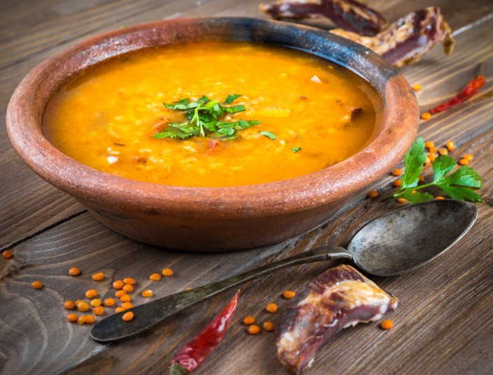 Обязательно попробуйте местный чечевичный суп, или мерджимек чорбасы. В стране выращивают множество видов бобовых культур, среди которых большую любовь завоевала чечевица (красная, желтая, зеленая). Именно красная чечевица стала основным компонентом знаменитого национального супа, который по разным рецептурам могут дополнять луком, морковью и картофелем. Такое блюдо обязательно приправляют хлопьями красного перца и соком лимона. Кроме этого супа, попробуйте также тархана чорбасы (национальное блюдо из высушенных и перемолотых овощей, дрожжей и муки), суп из вермишели с зеленой чечевицей и суп из потрохов.