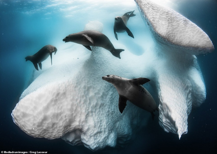 Французский фотограф Грег Лакер победил в категории "Подводный мир" за этот снимок тюленей в Антарктиде.