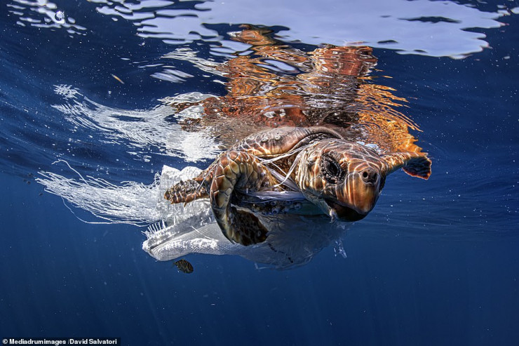 Итальянский фотограф Давид Сальватори победил в категории "Экологический вестник". Его фотография под названием "Запутанный" продемонстрировала влияние пластикового загрязнения на дикую природу океана.