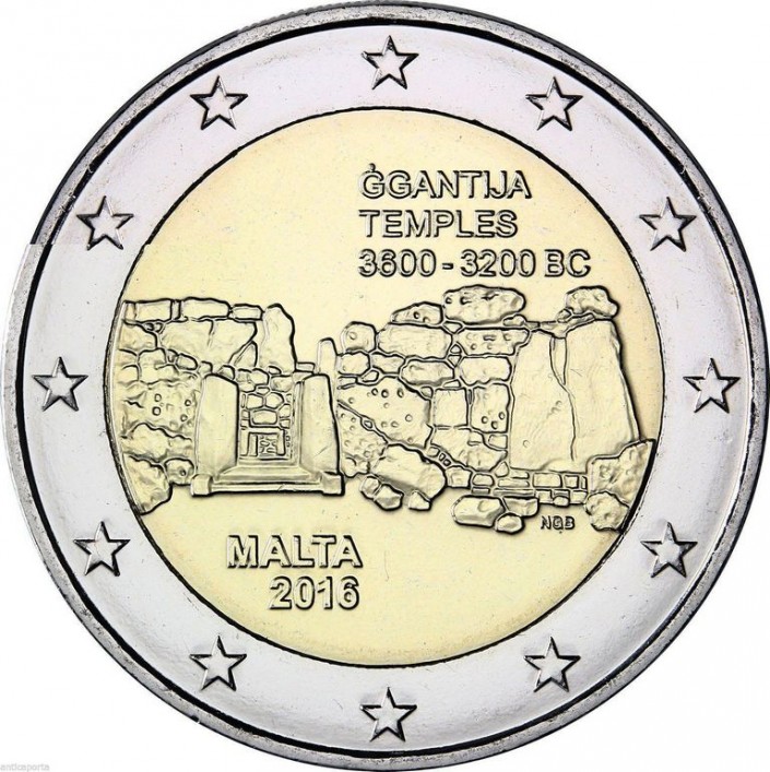 Впрочем, уже в следующем, 2016 году, ситуация изменилась. Центральный банк Мальты заявил о поэтапном выпуске серии памятных монет "Мальтийские доисторические комплексы". Так как собственного монетного двора островная республика не имеет, их было решено отчеканить во Франции. В рамках серии планируется выход семи "двухевровиков". По воле судьбы на первых трех из них оказались те мегалиты, о которых я теперь знаю не понаслышке. Кстати, и посещал я их в той же последовательности, как выходили монеты: это Джганти́я, Хаджар-Им и Мнайдра.